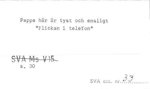 //// Pappa här är tyst och ensligt "Flickan i telefon" //// s. 30 //// SVA ccc. nr..."Z... ////