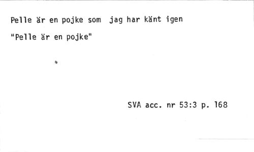 //// Pelle är en pojke som jag har känt igen //// "Pelle är en pojke" //// * //// SVA acc. nr 53:3 p. 168 ////