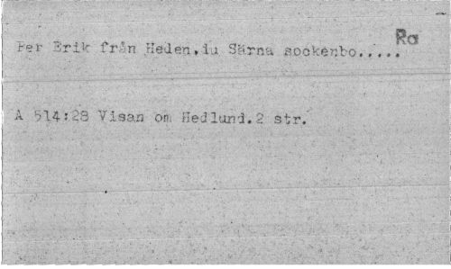 //// Ra //// Ter 3rik ?r*n .Heden. iu 3'ö.rna sockenbo... //// A 514 : 28 Visan ont Hedlund. 2 str. ////