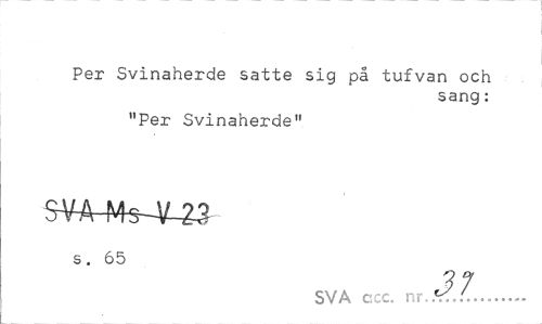 //// Per Svinaherde satte sig på tufvan och //// sang: //// "Per Svinaherde" //// SVA-M //// s. 65 //// SVA ccc. nr !... ////