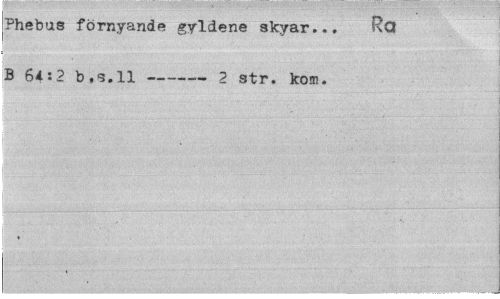 //// Phebus förnyande gyldene skyar... B 64.:2 b.s.ll---2 str. kom. ////