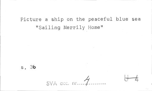 //// Picture a ship on the peaceful blue sea "Sailing Merrily Home" //// s. 3b //// A bH4 //// SVA ccc. nr.../... ////
