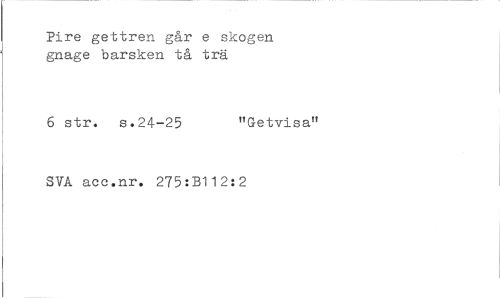 //// Pire gettren går e skogen gnage barsken tå trä //// 6 str. s.24-25 "Getvisa" //// SVA acc.nr. 275:B112:2 ////