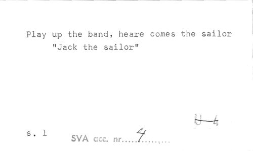 //// Play up the band, heare comes the sailor "Jack the sailor" //// S' 1 SVA ccc. nr...,/ ////