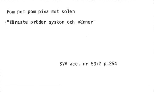 //// Pom pom pom pina mot solen "Käraste bröder syskon och vänner" //// SVA acc. nr 53:2 p.254 ////