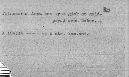 //// £a //// Prinsessan Anna kom tyst gick en guld- //// prydd sven bakom. //// A 409:19 --- 4 str. kom.not. //// ' •.*. ' '' '' "'*• i. -1". ; . •••':'. • V • .• . ..." v //// ' • -W. r *',/."/.. ¦• ¦ • * . • V . 1 . ' '. " :"* ' ...; //// V:.'/- . ////