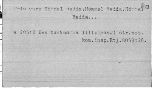 //// äp //// Pris vare Hömmel Hedda»Hömrnel Hedda,tlörmel ! Hedda.., //// A 205:2 Den tacksamma lillpigan.1 str.not. //// kom. insp. Rt j . 8869 26. ////