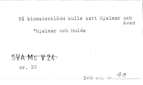 //// På blomsterklädd kulle satt Hjalmar och //// kvad //// "Hjalmar och Hulda nr. 23 //// 46 //// SVA ccc. nr... ////