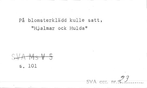 //// På blomsterklädd kulle satt, "Hjalmar ock Hulda" //// s # 101 //// ? ? //// SVA ccc. nr.fu ... ////