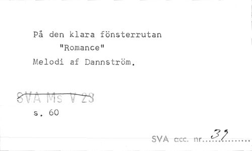 //// På den klara fönsterrutan //// "Romance" Melodi af Dannström. //// gl-A Ms V23 //// s. 60 //// SVA ccc.-nr. ////