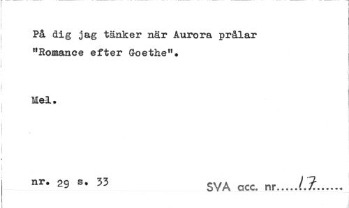 //// På dig jag tänker när Aurora prålar "Romance efter Goethe". //// Mel. //// nr* 29 s. 33 SVA ccc> nr...(J,... ////
