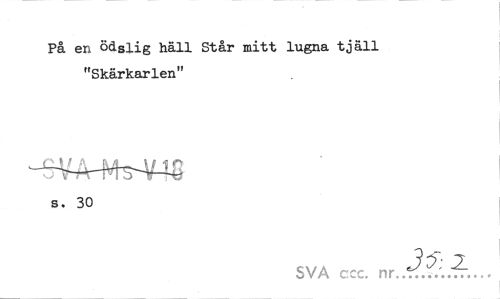 //// På en ödslig häll Står mitt lugna tjäll "Skärkarlen" //// s. 30 //// SVA ccc. nr..It... ////