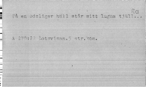 //// ¦ ¦ //// | På en ödsiiger häl1 står mitt lugna t iall... //// . A 270:2? Lotsvi.srm.5 str.kom. ////