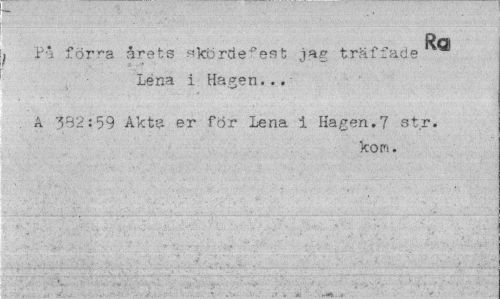 //// Q—i //// , förra årets skördefest jag träffade //// Lena i Hagen... //// A 382:59 Akta er För Lena i Hagen.7 str. //// kom. //// ' ;.' --'V - " : Y-\ '' ". • "V* t v ¦ \ , • - . • ; k ////