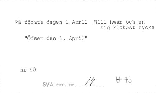 //// På första degen i April Will hwar och en //// sig klokast tycka //// "Öfwer den 1. April" nr 90 //// tH5 //// SVA ccc. nr...// --- ////