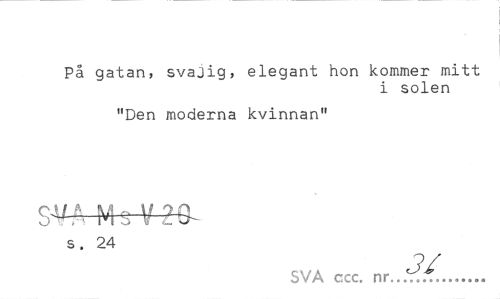 //// På gatan, svajig, elegant hon kommer mitt //// i solen //// "Den moderna kvinnan" //// s. 24 //// ?/ //// SVA ccc. nr... ////