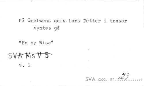 //// På Grefwens gots Lars Petter i trasor syntes gå //// "En ny Wisa'J s. 1 //// SVA ccc. nr..f^?...< ////
