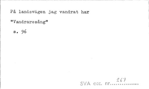 //// På landsvägen jag vandrat har "Vandrare sång" s. 96 //// SVA ccc. nr... ////