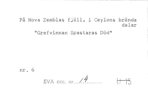 //// På Nova Zemblas fjäll, i Ceylons brända //// dalar //// "Grefvinnan Spastaras Död" //// nr. 6 //// SVA ccc. nr, d m ////