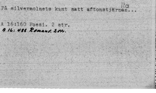 //// 'T... ila 7';>v //// På silvermolnets kant satt aftonstjärnan... //// A 16:160 Poesi. 2 str. * /i: *tt ////