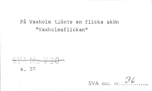 //// På Vaxholm tjänte en flicka skön "Vaxholmsflickan" //// yj \ i* j O £<L* KJ //// s. 37 //// SVA ccc. nr... ////