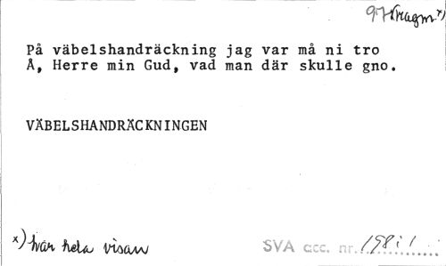 //// På väbelshandräckning jag var må ni tro //// Å, Herre min Gud, vad man där skulle gno. //// VÄBELSHANDRÄC KNINGEN //// *)jvCh hdUj vtoaMJ SVA ccc. ////