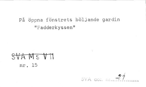 //// På öppna fönstrets böljande gardin "Fadderkyssen11 //// swtrm //// nr, 15 //// W V CiwCo o t i 000000303000009 ////