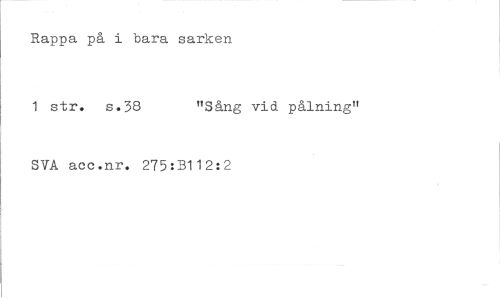 //// Rappa på i bara särken //// 1 str. s.38 "Sång vid pålning" //// SVA acc.nr. 275:3112:2 ////