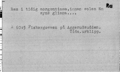 //// ft (3 //// Hen i tidig morgontimma,innan solen än j syns glimma... //// - A 60:5 ^iskar-gossen på Aggerudsudden. //// Tidn.urklipp. ////