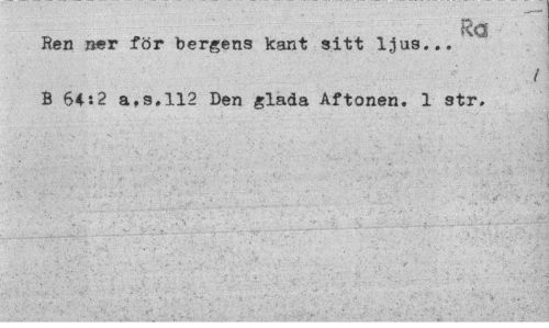 //// Ra //// Ren ner för bergens kant sitt ljus... //// t //// B 64:2 a.s.112 Den glada Aftonen. 1 str. ////