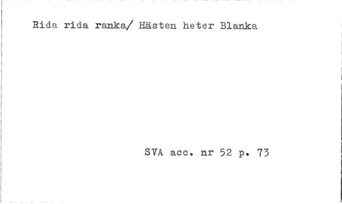 //// Bida rida ranka/ Hästen heter Blanka //// STA acc. nr 52 p. 73 ////