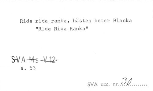 //// Rida rida ranka, hästen heter Blanka "Rida Rida Ranka" //// s. 63 //// SVA ccc. nr //// 3A.. ////