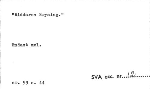 //// "Riddaren Bryning.M Endast mel. //// SVA acc. nr.../<2/... //// nr. 59 s. 44 ////