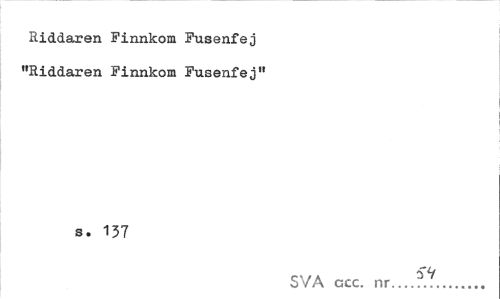 //// Riddaren Finnkom Fusenfej "Riddaren Finnkom Fusenfej" //// s. 137 //// SVA ccc. nr... ////
