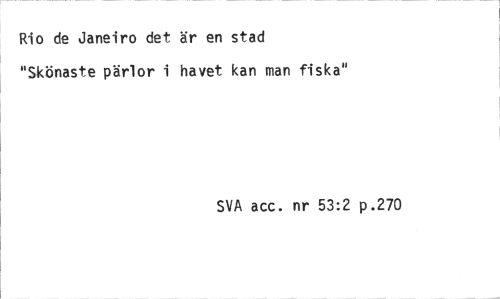 //// Rio de Janeiro det är en stad "Skönaste pärlor i havet kan man fiska" //// SVA acc. nr 53:2 p.270 ////