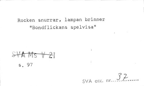 //// Rocken snurrar, lampan brinner "Bondflickans spelvisa" //// s. 97 //// 3? //// SVA ccc. r\x... ////