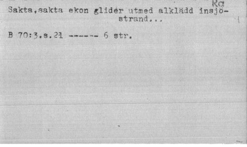 //// Sakta,sakta ekon glider utmed alklädd insjö- //// strand... 'i //// B 70: 3. s. 21---6 str. ////