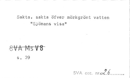 //// Sakta» sakta öfver mörkgrönt vatten "Sjömans visa" //// s. 39 //// SVA ccc, nr //// J6... ////