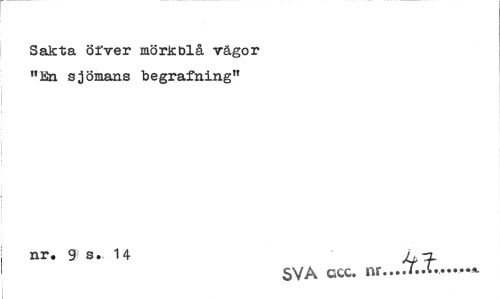 //// Sakta öfver mörkblå vågor "län sjömans begrafning" //// nr. 9- s. 14 Ao. //// SVA ecc. nr.../..t». ////