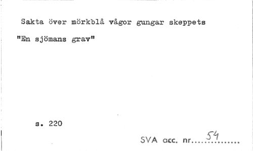 //// Sakta över mörkblå vågor gungar skeppets "En sjömans grav" //// s. 220 //// SVA acc. nr—... ////