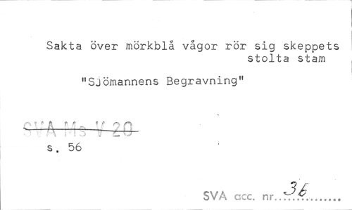 //// Sakta över mörkblå vågor rör sig skeppets //// stolta stam //// "Sjömannens Begravning" //// f\ I- P » ^ \ 7 Q //// s. 56 //// SVA ccc. ... ////