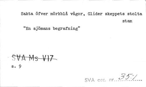//// Sakta öfver mörkblå vågor, Glider skeppets stolta //// stam //// "En sjömans begrafning" //// s. 9 //// SVA ccc. ////