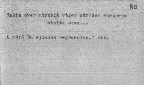 //// - v;"- . . Ra //// Sakta över mörkblå vågor strHde1" skeppets stolta stam... //// A 49*6 In sjömans begravning.7 str. ////