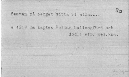 //// i 8er //// Samman pa b°rget sitta, vi alla.,,. //// 4 4 2:8 Om kapten Kollas ballongfärd och //// död. i st-r, mel »kom. ////