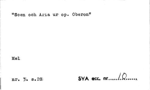 //// "Scen och Aria ur op. Oberon" Mel //// nr. J* S.283 SVA «cc. nr... LO, •t • ////