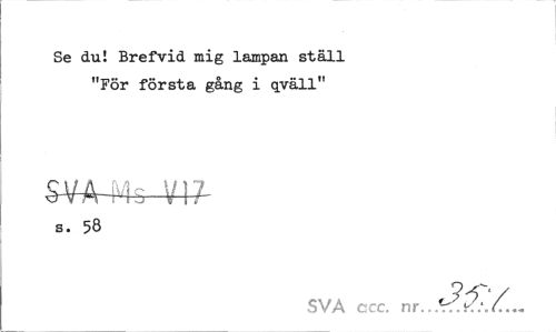 //// Se du! Brefvid mig lampan ställ "För första gång i qväll" //// s. 58 //// SVA ccc. ////