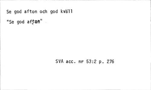 //// Se god afton och god kväll "Se god aften" //// SVA acc. nr 53:2 p. 276 ////