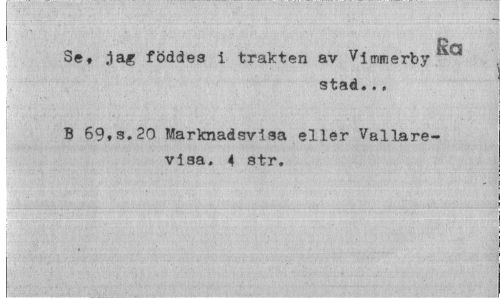 //// Kfs //// Se« jag föddes i trakten av Vimmerby , //// stad... //// B 69»s.20 Marknadsvisa eller Vallarevisa. 4 str. ////