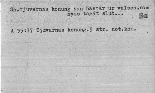 //// S'e»tjuvarnas konung han hastar ur valsen,som //// nyss tagit slut... //// A 35 '-77 Tjuvarnas konung. 5 str. not.kom. //// j "...' ¦ .' ' ... ...-- //// I //// _ ////