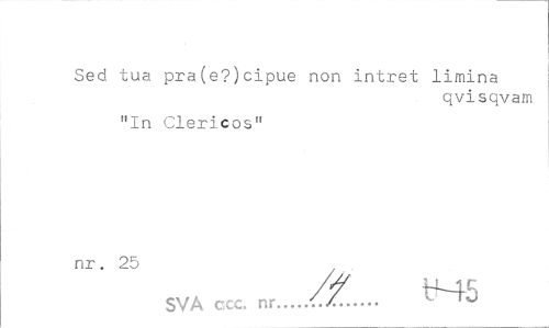 //// Sed tua pra(e?)cipue non intret limina //// qvisqvam //// "In Clericos" nr. 25 //// SVA ccc. nr.../.A... ////